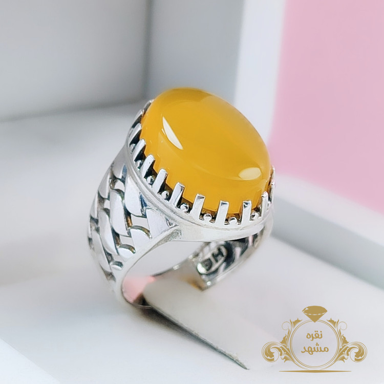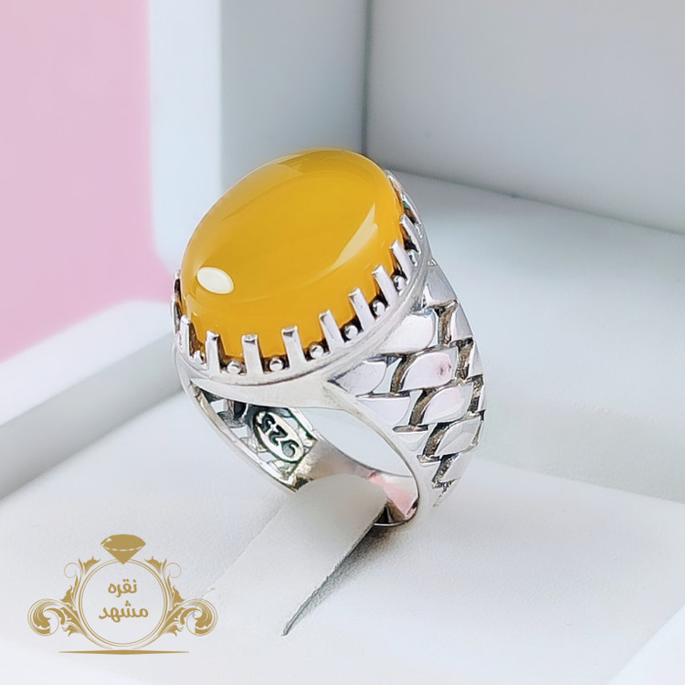 🟡 انگشتر نقره مردانه عقیق زرد شرف الشمس