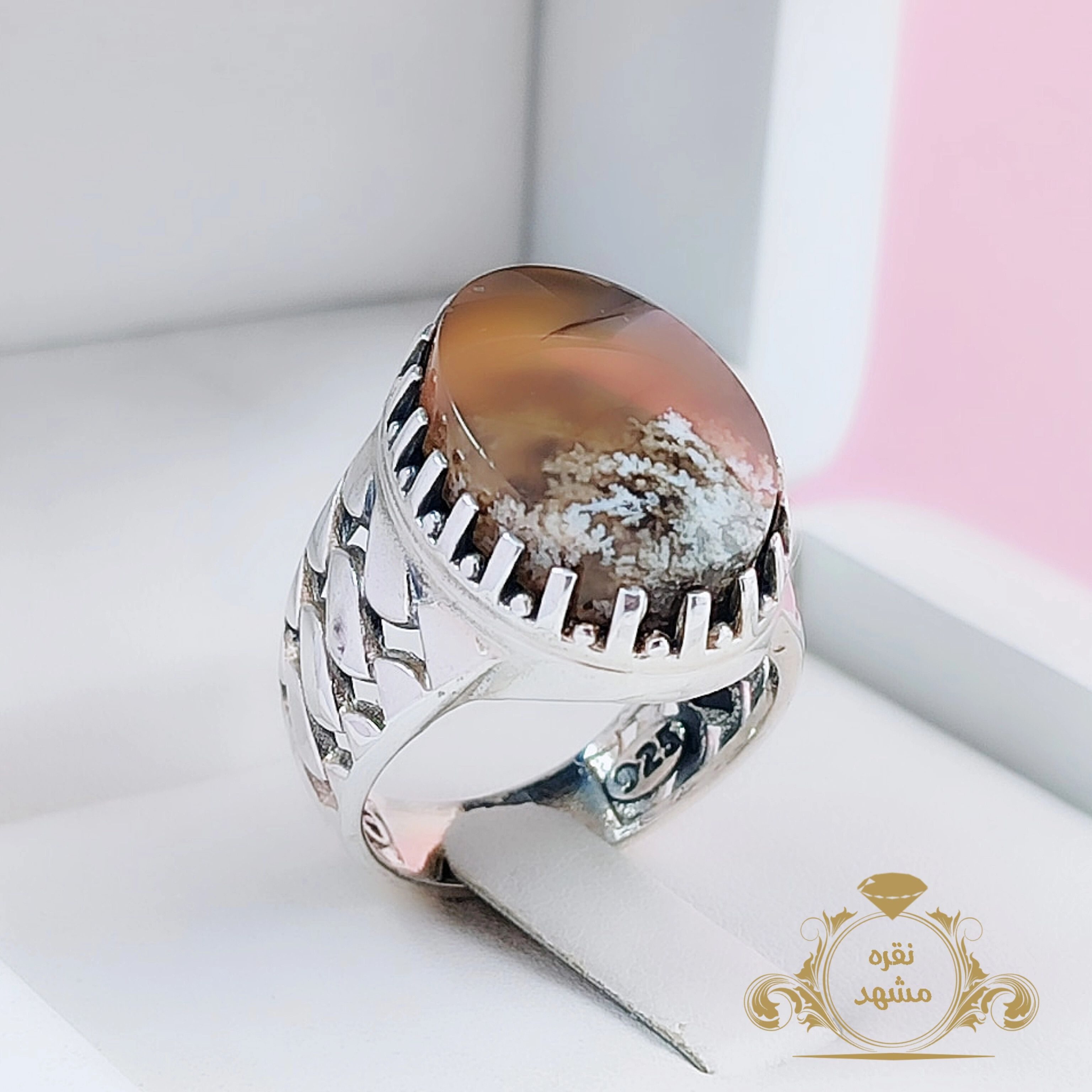 🟤 انگشتر نقره مردانه شجر طبیعی