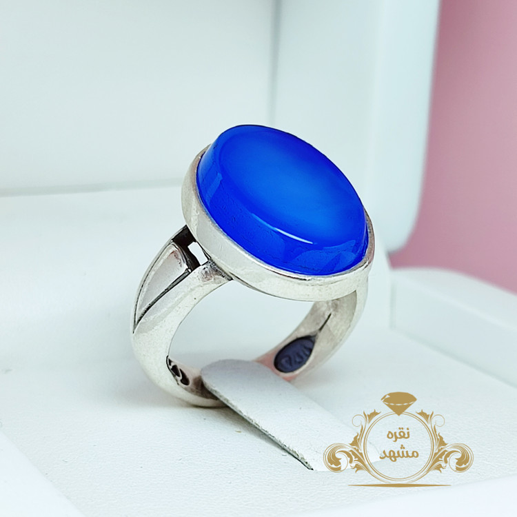 🔵 انگشتر نقره مردانه عقیق آبی