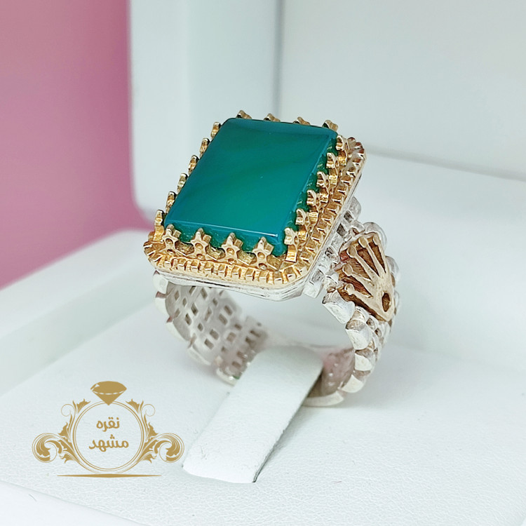 🟢 انگشتر مردانه عقیق سبز رولکسی