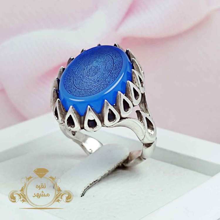 ✍حکاکی ذکر دلخواه شما روی سنگ عقیق آبی به رنگ های مختلف و رکاب موردنظر شما😍