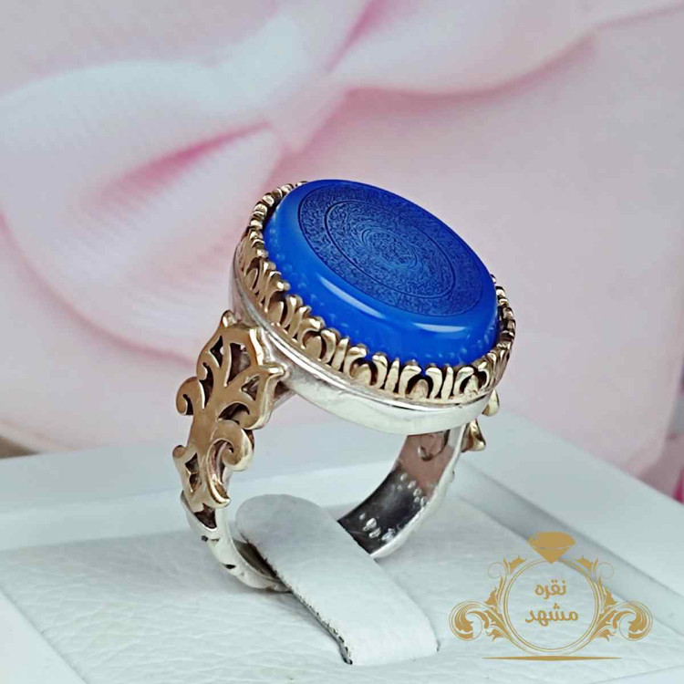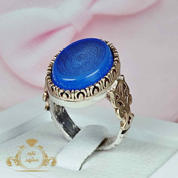 انگشتر مردانه ۱۶ ذکر عقیق آبی خوشرنگ