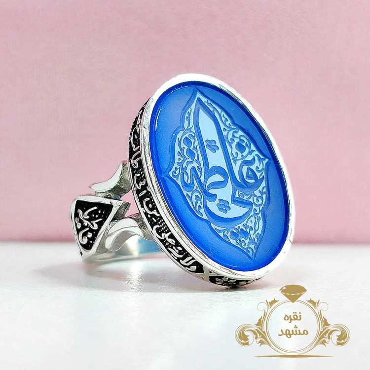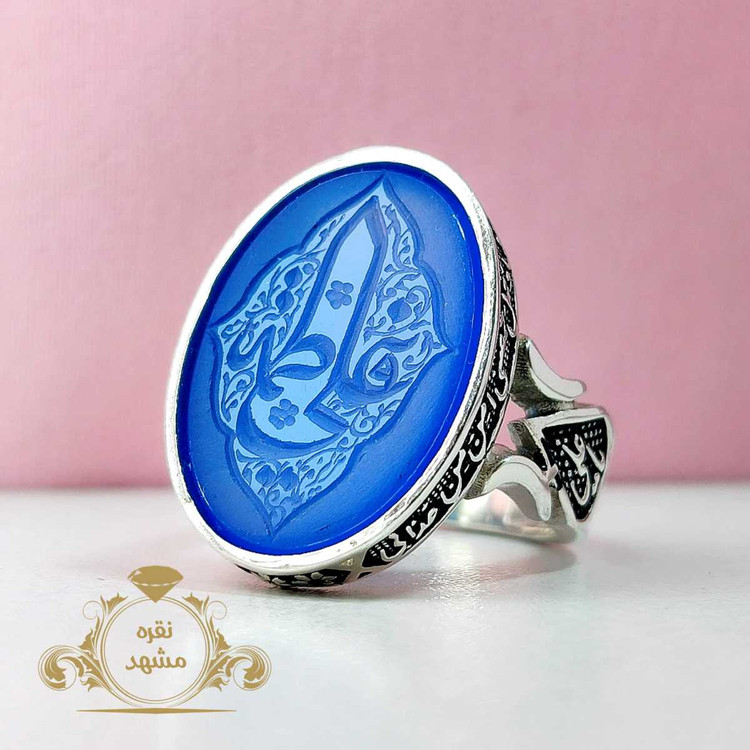 انگشتر خطی عقیق آبی با ذکر علی فاطمه