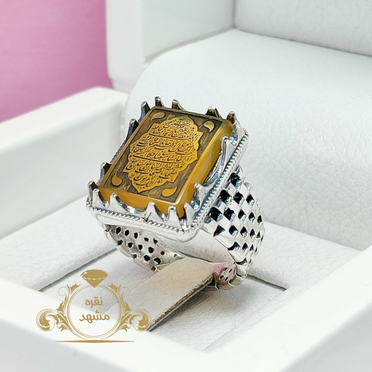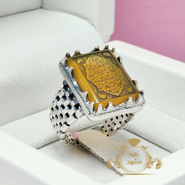 انگشتر مردانه رولکسی عقیق زرد حکاکی سوره واقعه