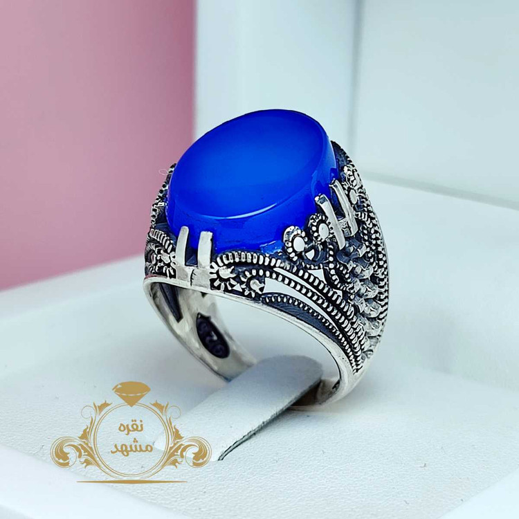 🔵 انگشتر نقره مردانه عقیق آبی