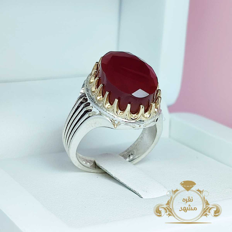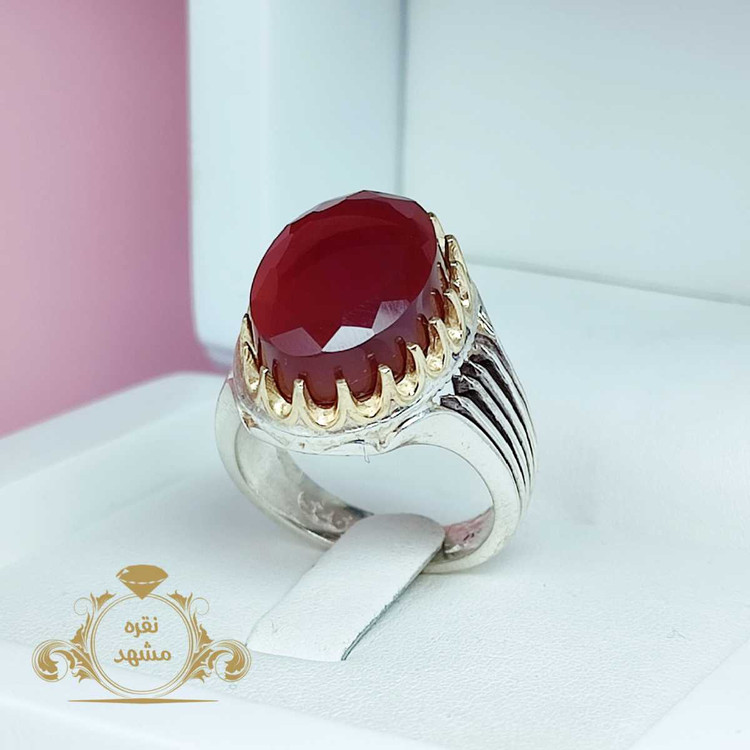 انگشتر عقیق قرمز خراسانی مردانه عقیق سرخ تراش جواهر