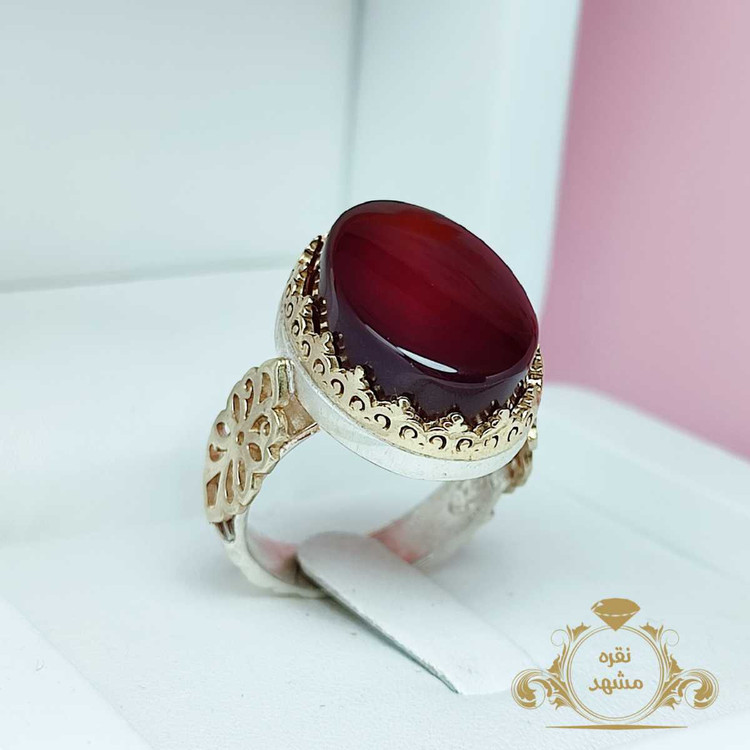 انگشتر با عقیق سرخ تاج و بغل طلایی