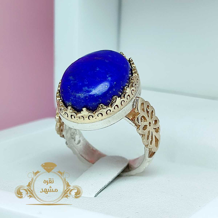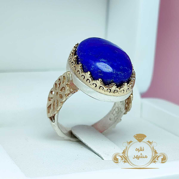انگشتر لاجورد افغان مردانه رکاب نقره ۹۲۵