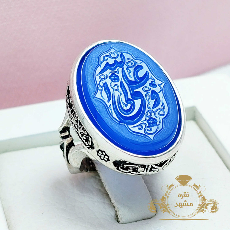 انگشتر مذهبی علی ولی الله عقیق آبی ضمانتی