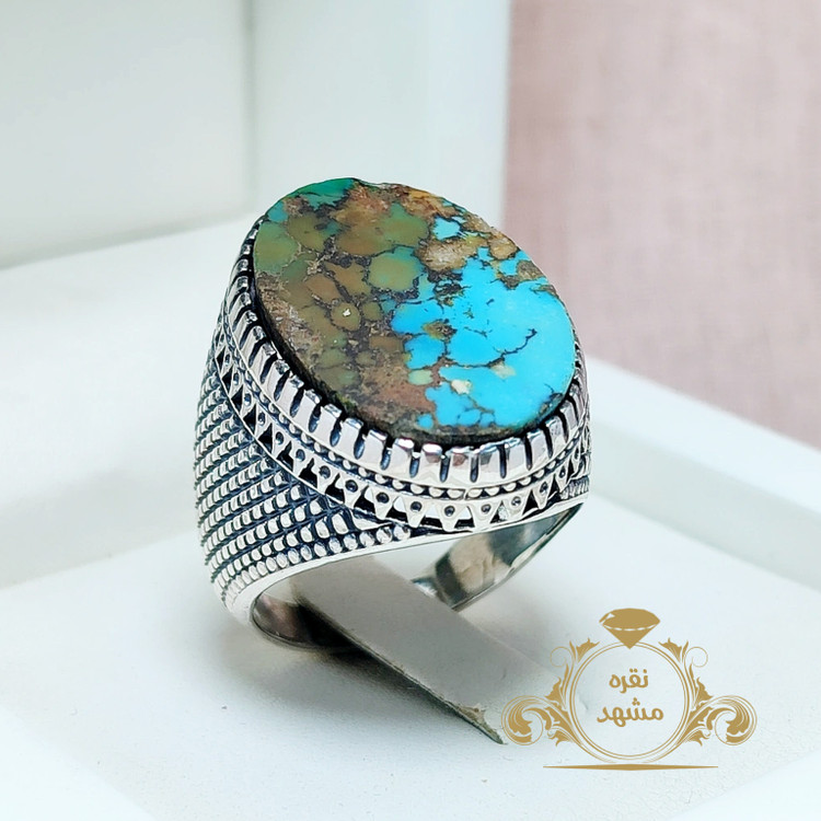 انگشتر فیروزه اصل نیشابور سبز و آبی