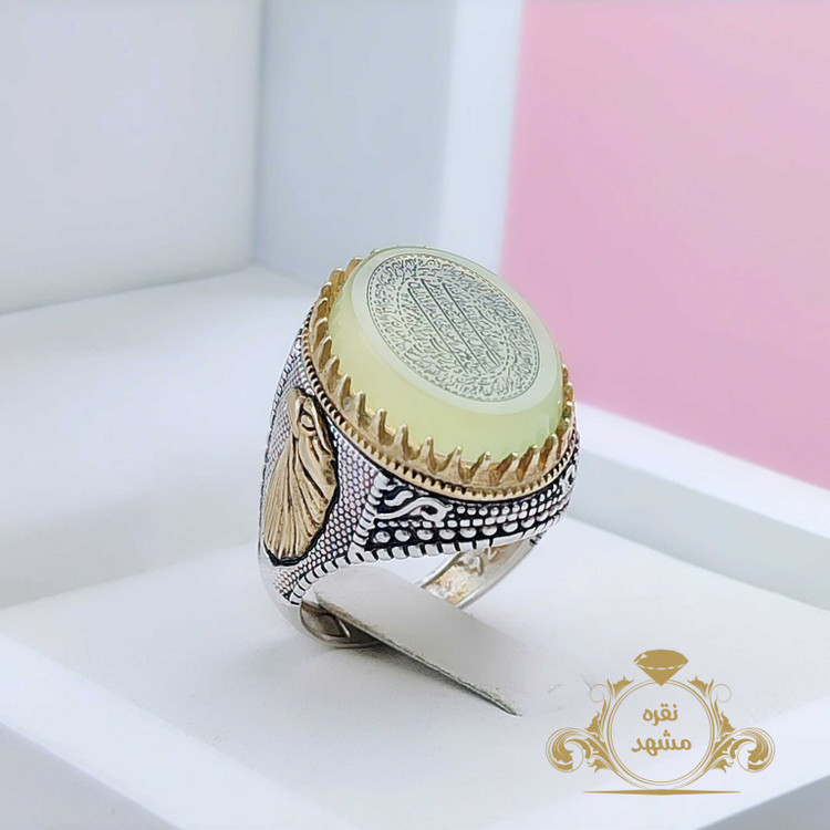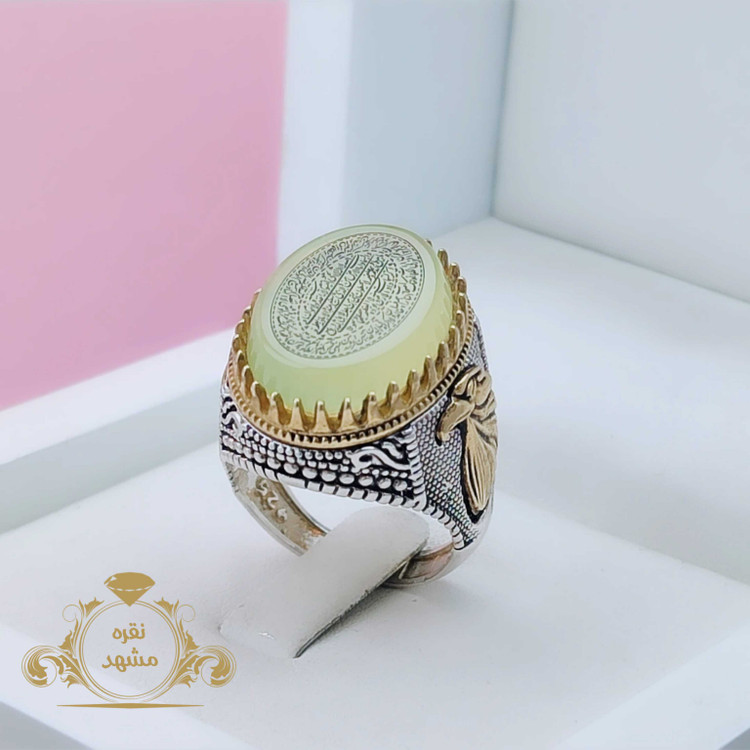 انگشتر عقیق سبز کاهویی با حکاکی