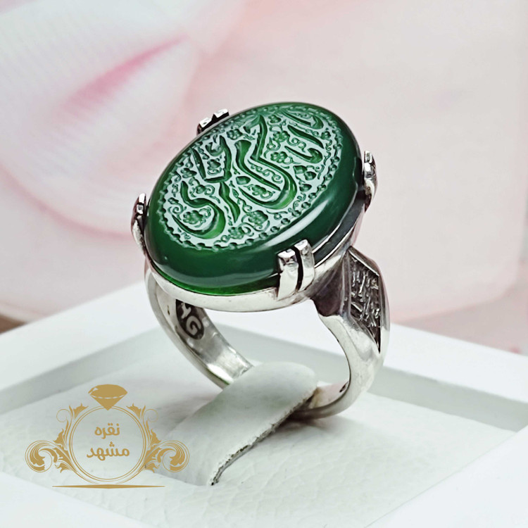انگشتر عقیق سبز حکاکی امام حسن عسکری