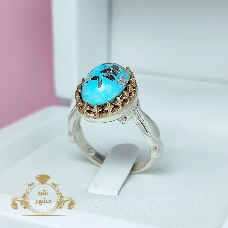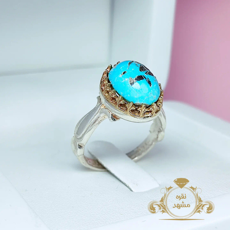 🔵 انگشتر نقره مردانه فیروزه نیشابوری