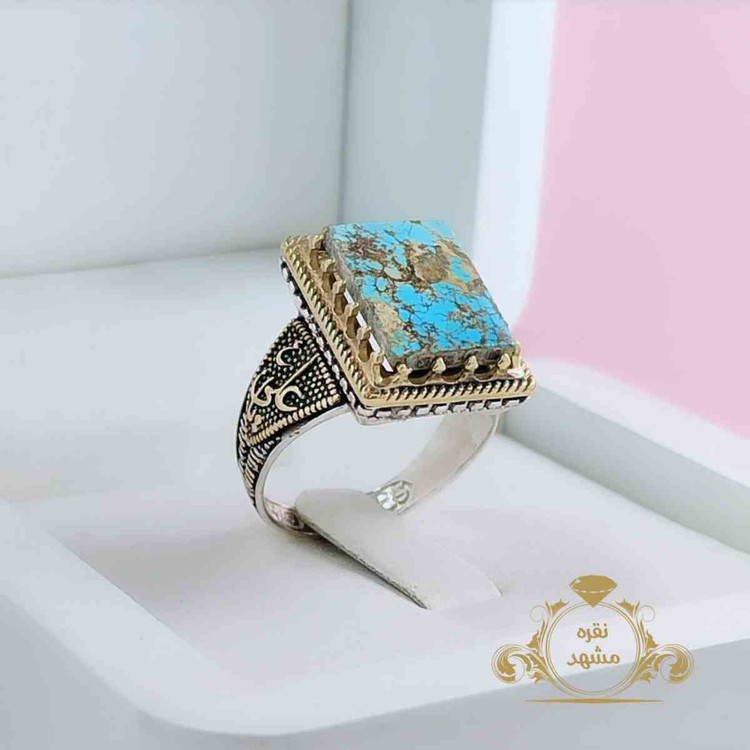 🔵 انگشتر نقره مردانه فیروزه نیشابوری