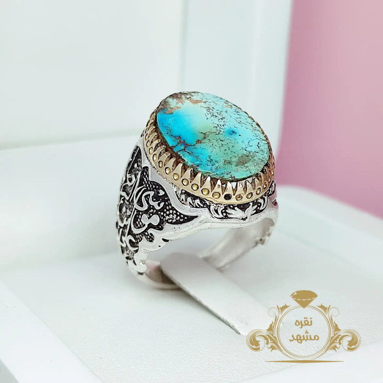 🔵 انگشتر نقره مردانه فیروزه نیشابوری