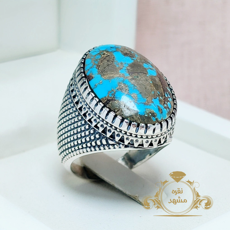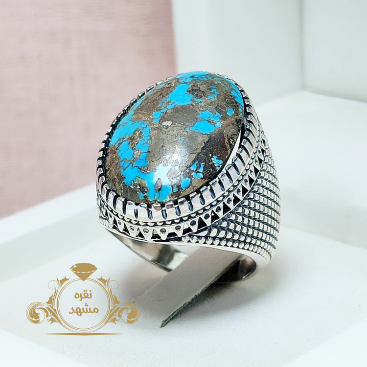 انگشتر فیروزه اصل نیشابور آبی و مشکی