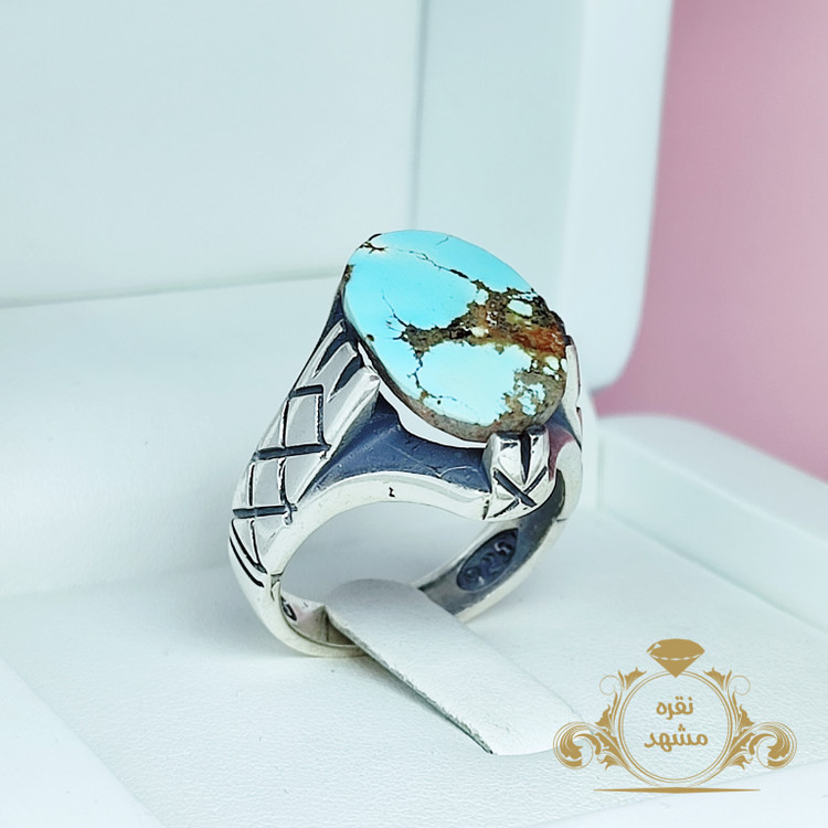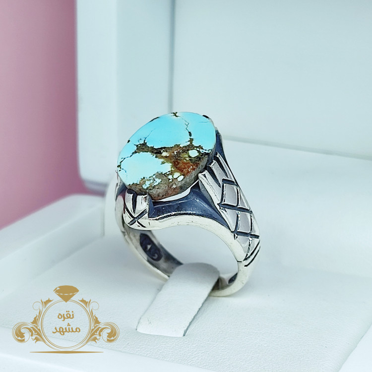 انگشتر فیروزه نیشابور‌ی ساده هشت چنگ