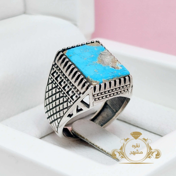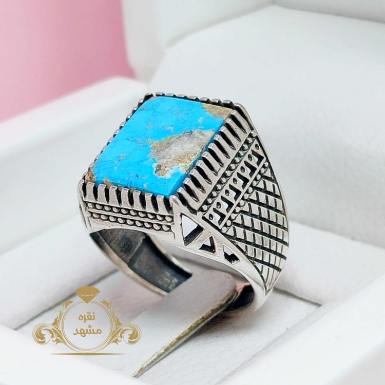 انگشتر حصیری فیروزه نیشابوری مردانه چهارگوش