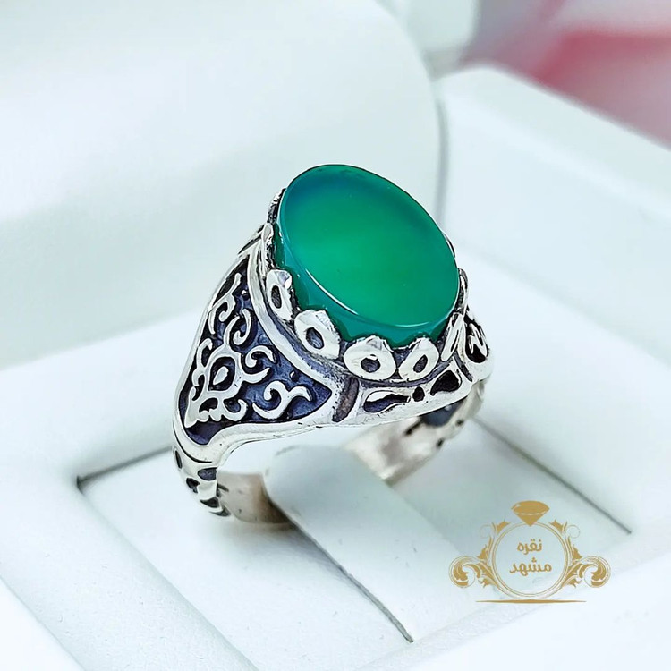 انگشتر مردانه عقیق سبز با رکاب اسپرت