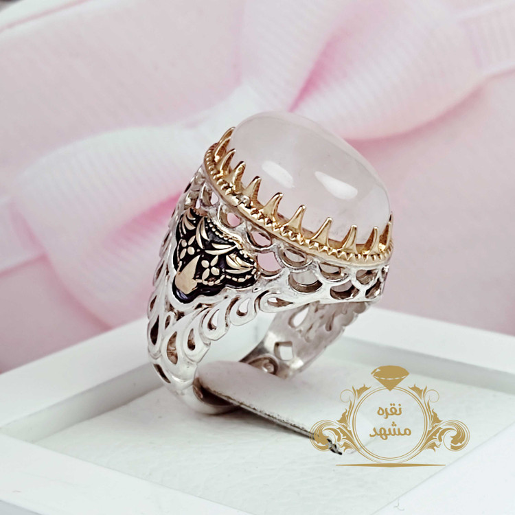 انگشتر کوارتز اصلی مردانه رکاب نقره طرح پولکی