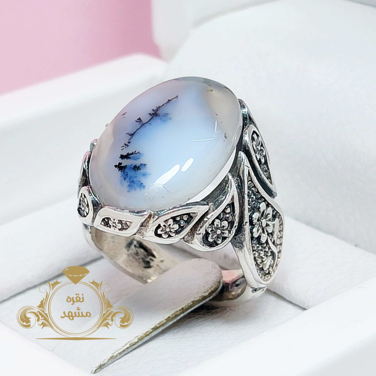 🔵 انگشتر نقره مردانه عقیق شجر