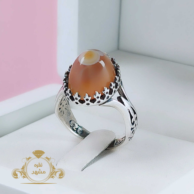 ⚫ انگشتر عقیق سلیمانی مردانه نقره