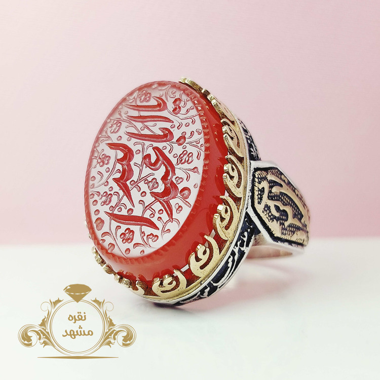 انگشتر یا اباعبدالله سرخ مردانه عقیق اصلی