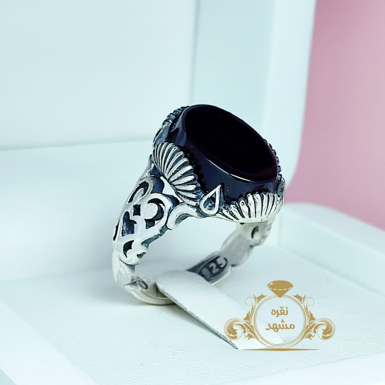 عقیق سیاه انگشتر مردانه جوندار انگشتر نقره