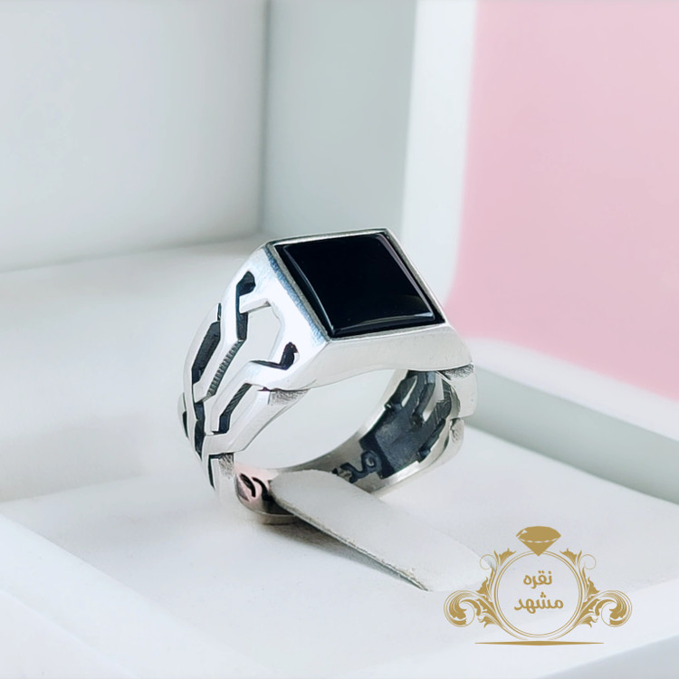 انگشتر عقیق سیاه خاص مردانه نقره