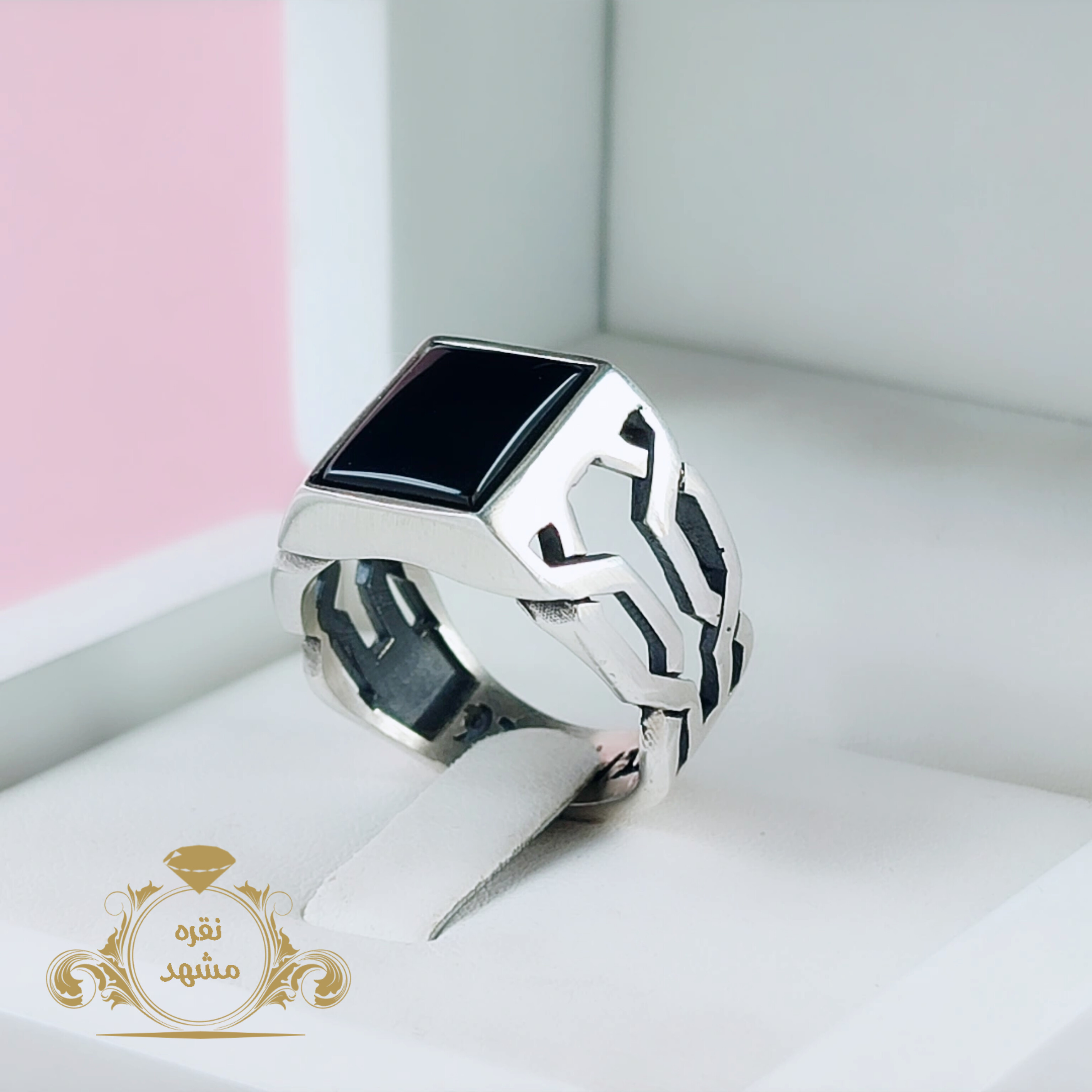 انگشتر عقیق سیاه خاص مردانه نقره