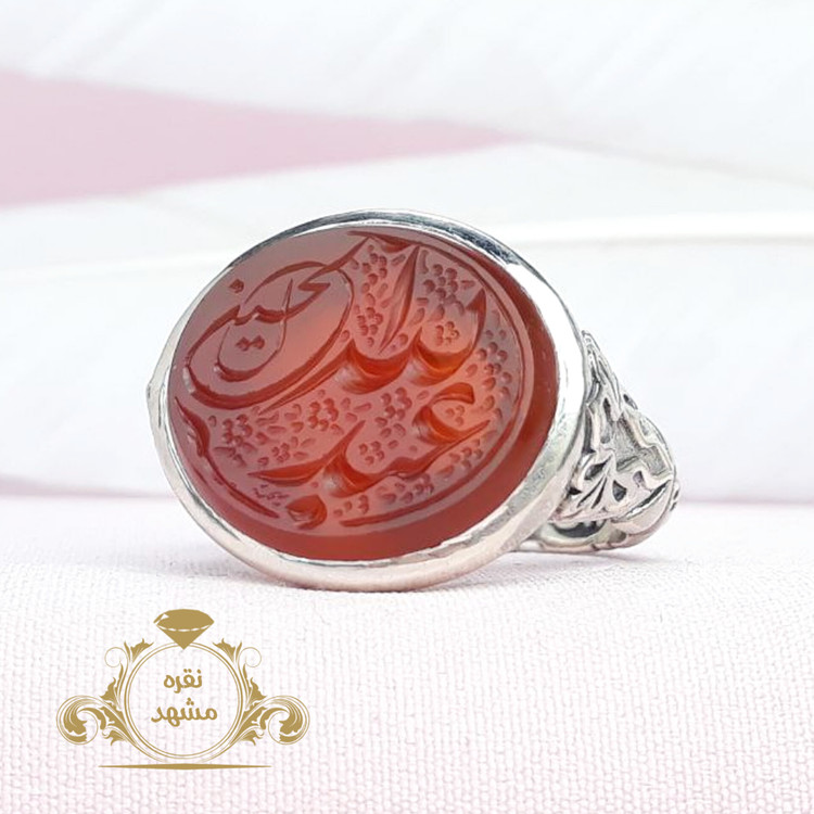 انگشتر مردانه زیبا عبدالله الحسین عقیق سرخ