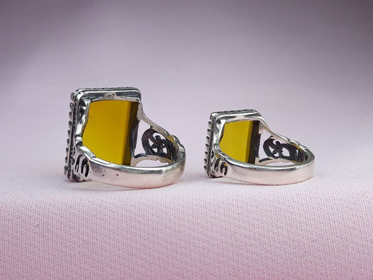 ست انگشتر زنانه مردانه عقیق زرد شرف الشمس نقره اصلی