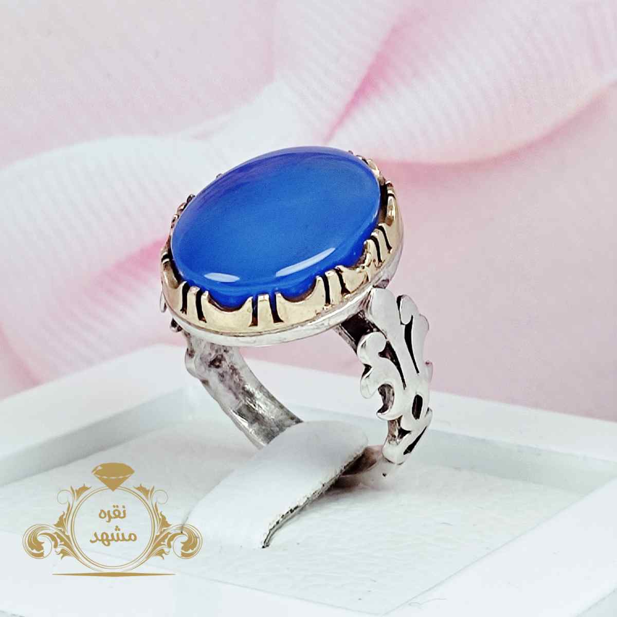 انگشتر عقیق آبی نقره مردانه اصلی معدنی
