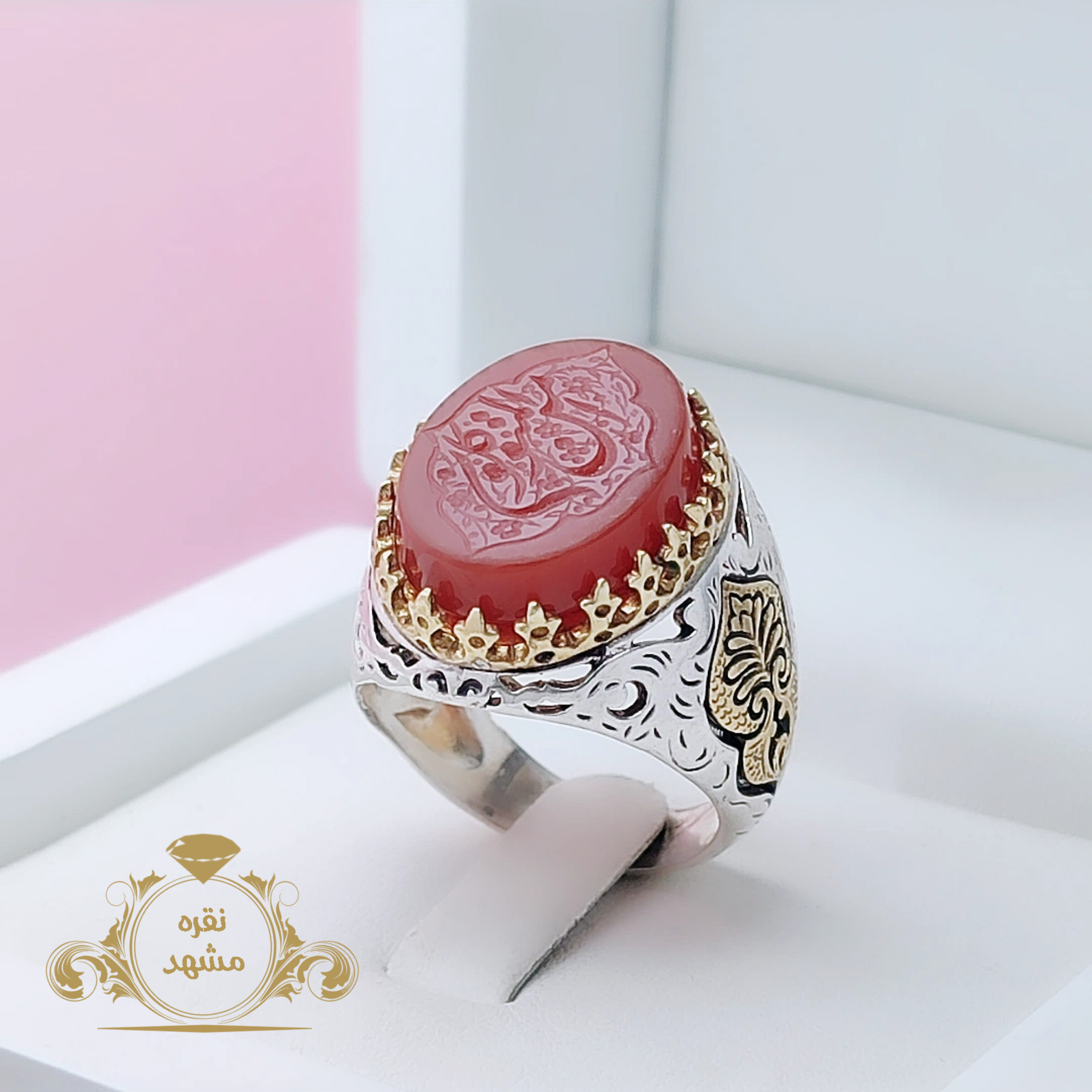 انگشتر امن المتوکلون عقیق سرخ مردانه رکاب نقره