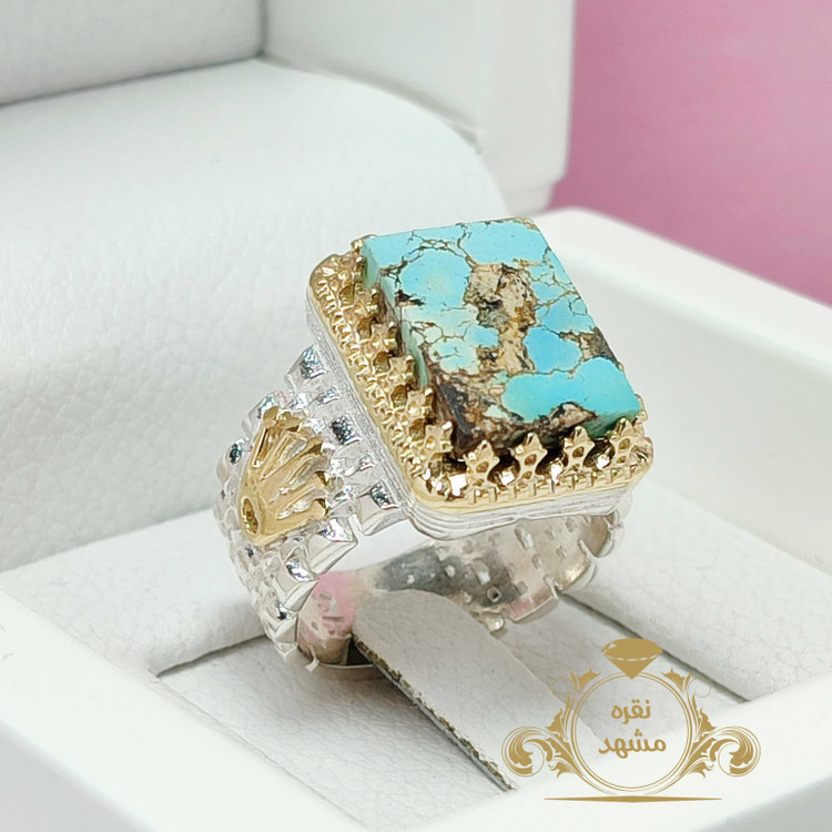 انگشتر نقره مردانه فیروزه اصل نیشابور مدل رولکسی