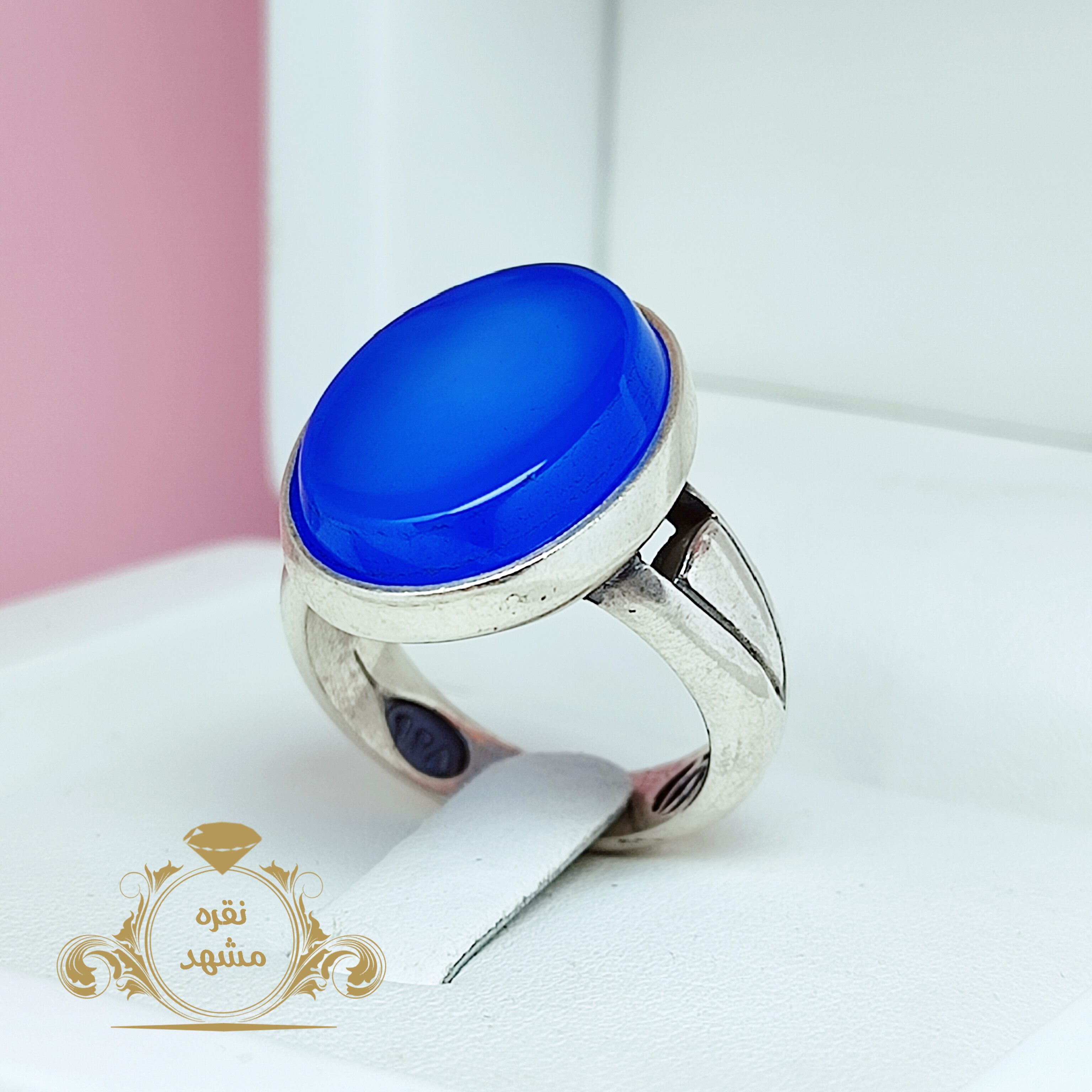 🔵 انگشتر نقره مردانه عقیق آبی
