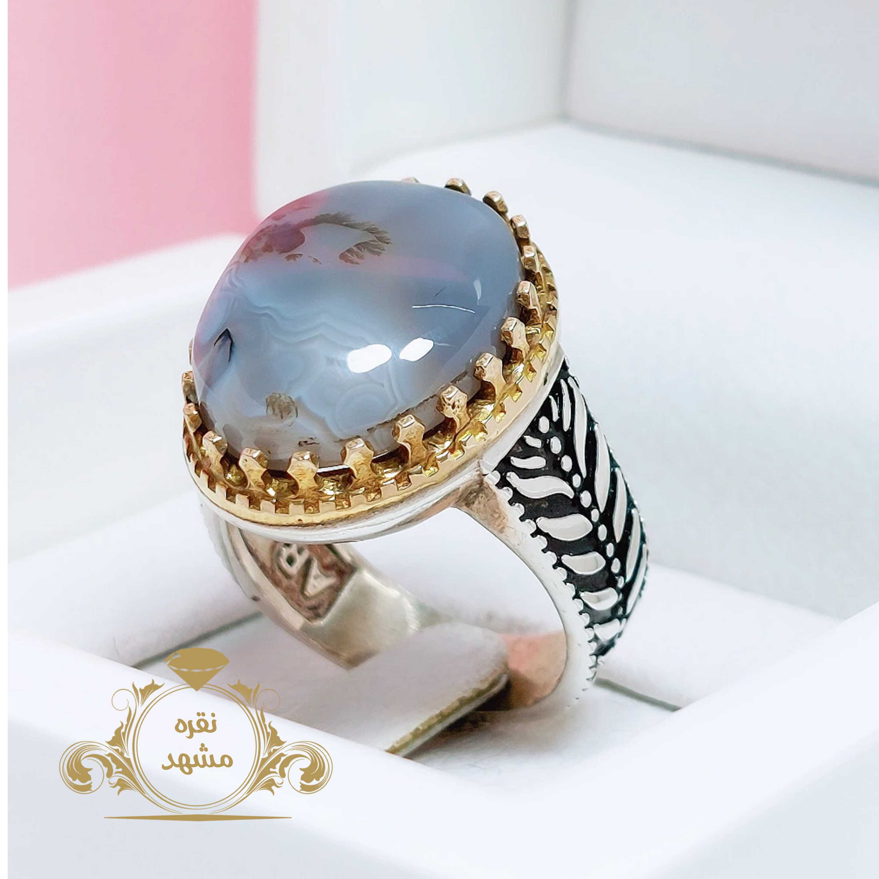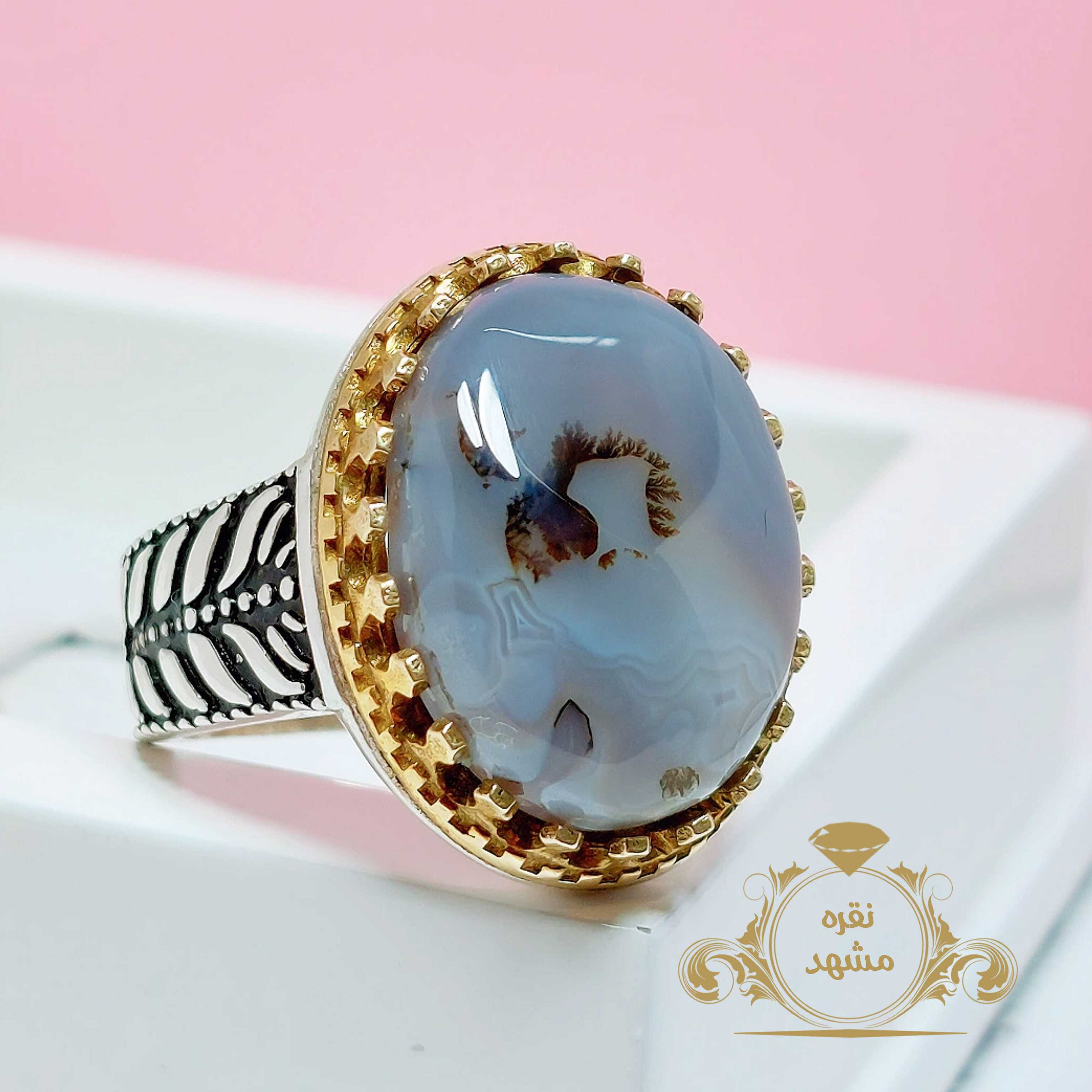 انگشتر مردانه شجر قائن عقیق کبود رگه دار اصل