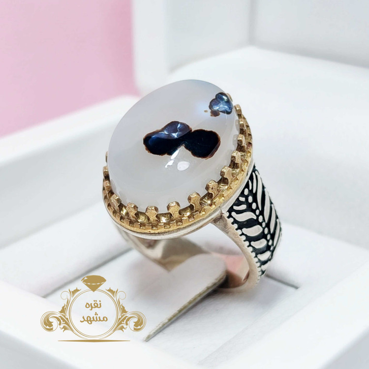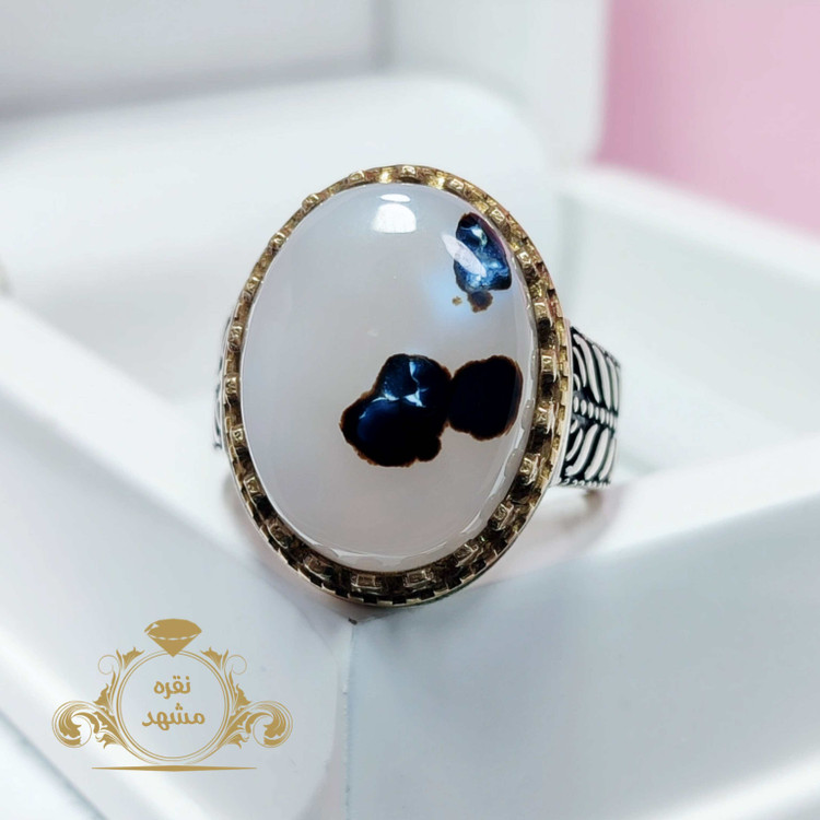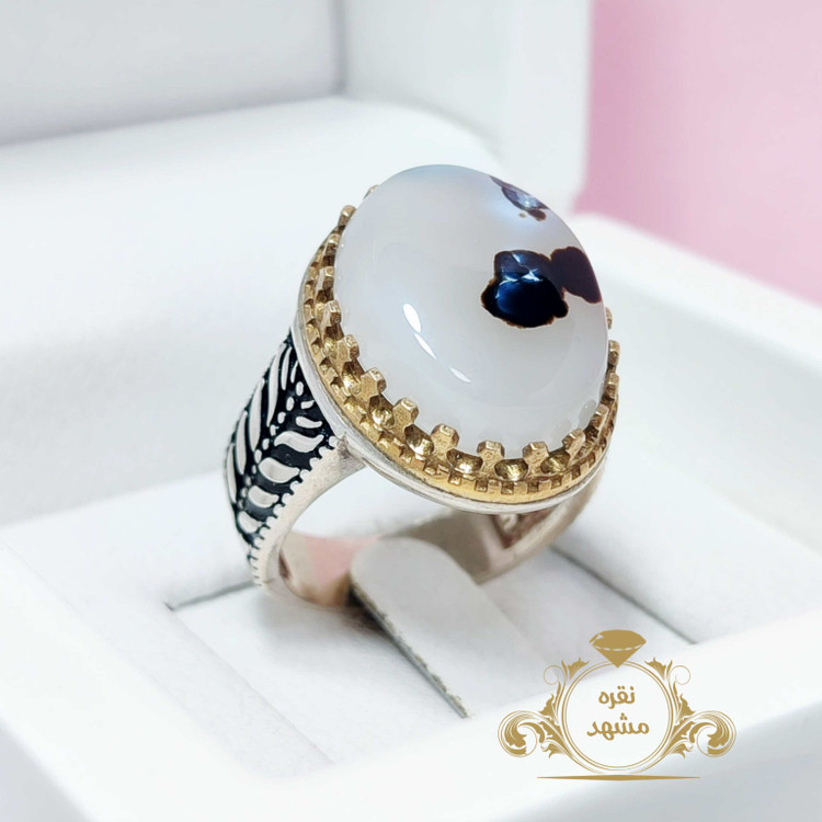 انگشتر مردانه شجر قائن عقیق سفید خالدار