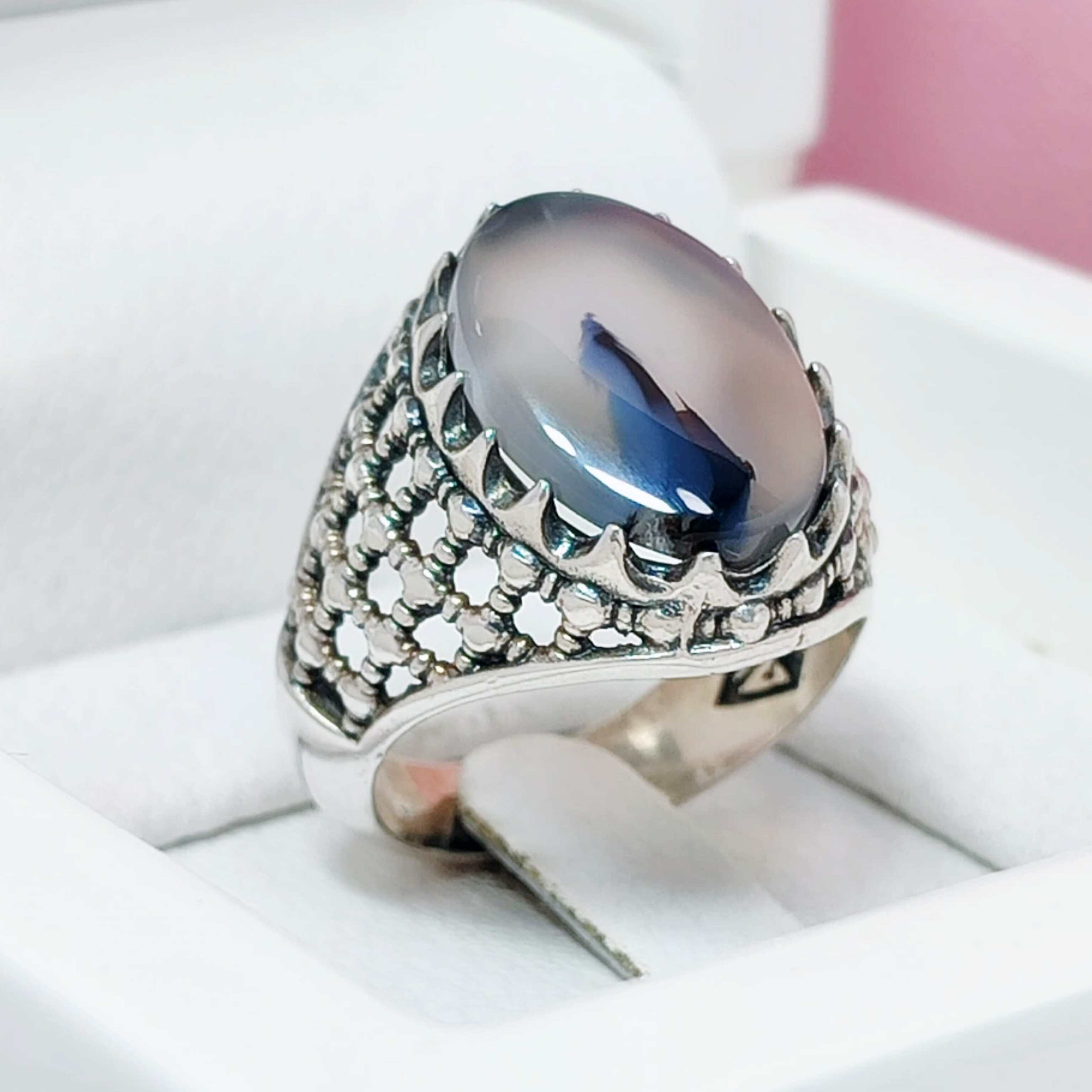 انگشتر مذهبی طرح ضریح مردانه با نگین شجر