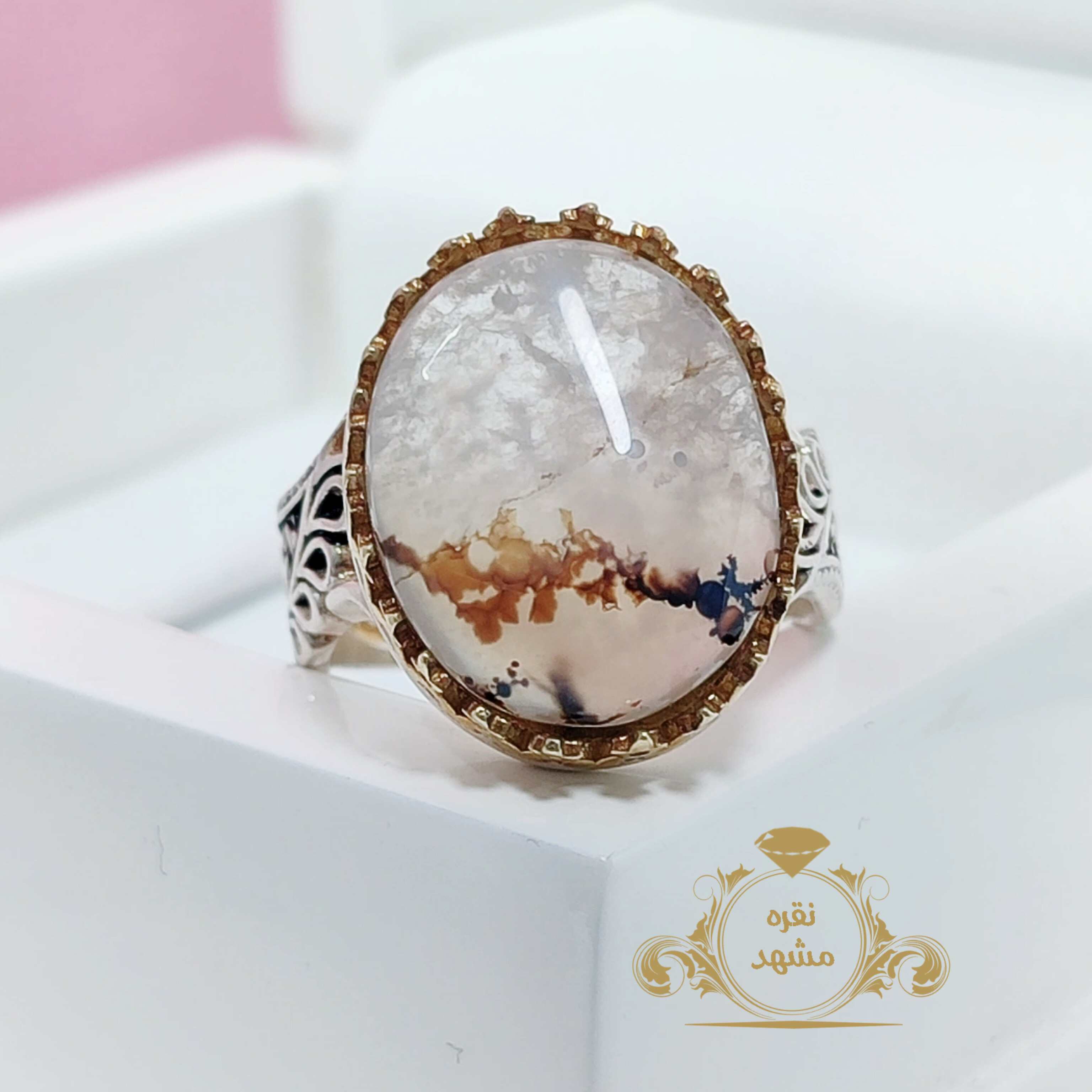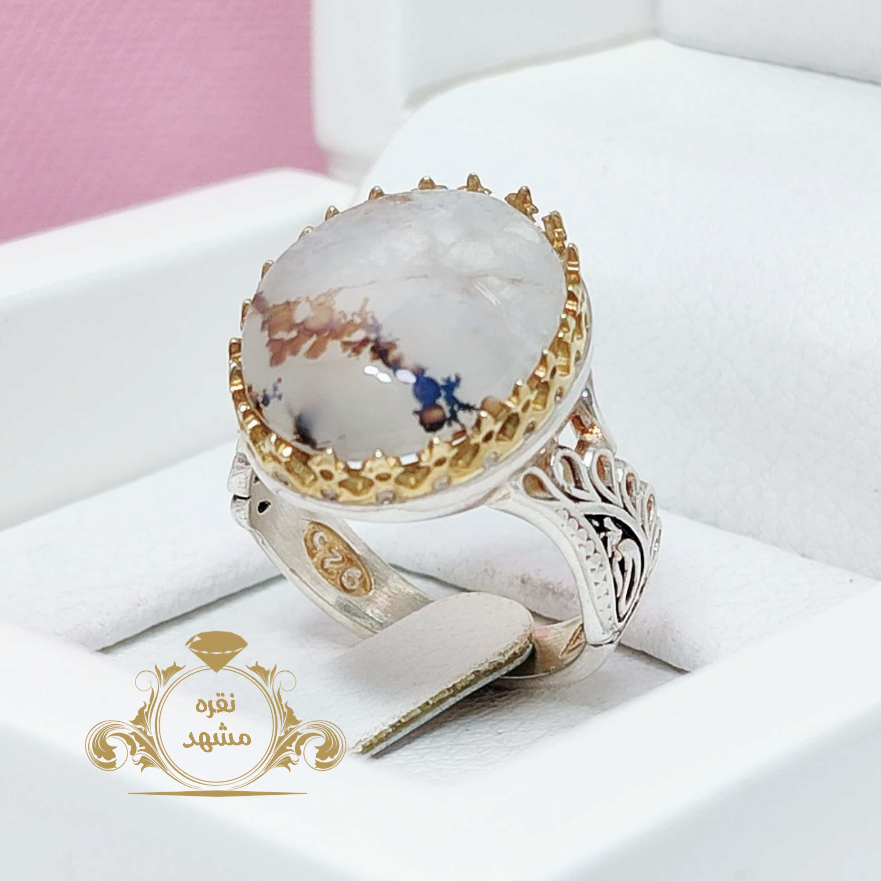 انگشتر شجر قائن اصلی و معدنی نقش شکوفه های سفید