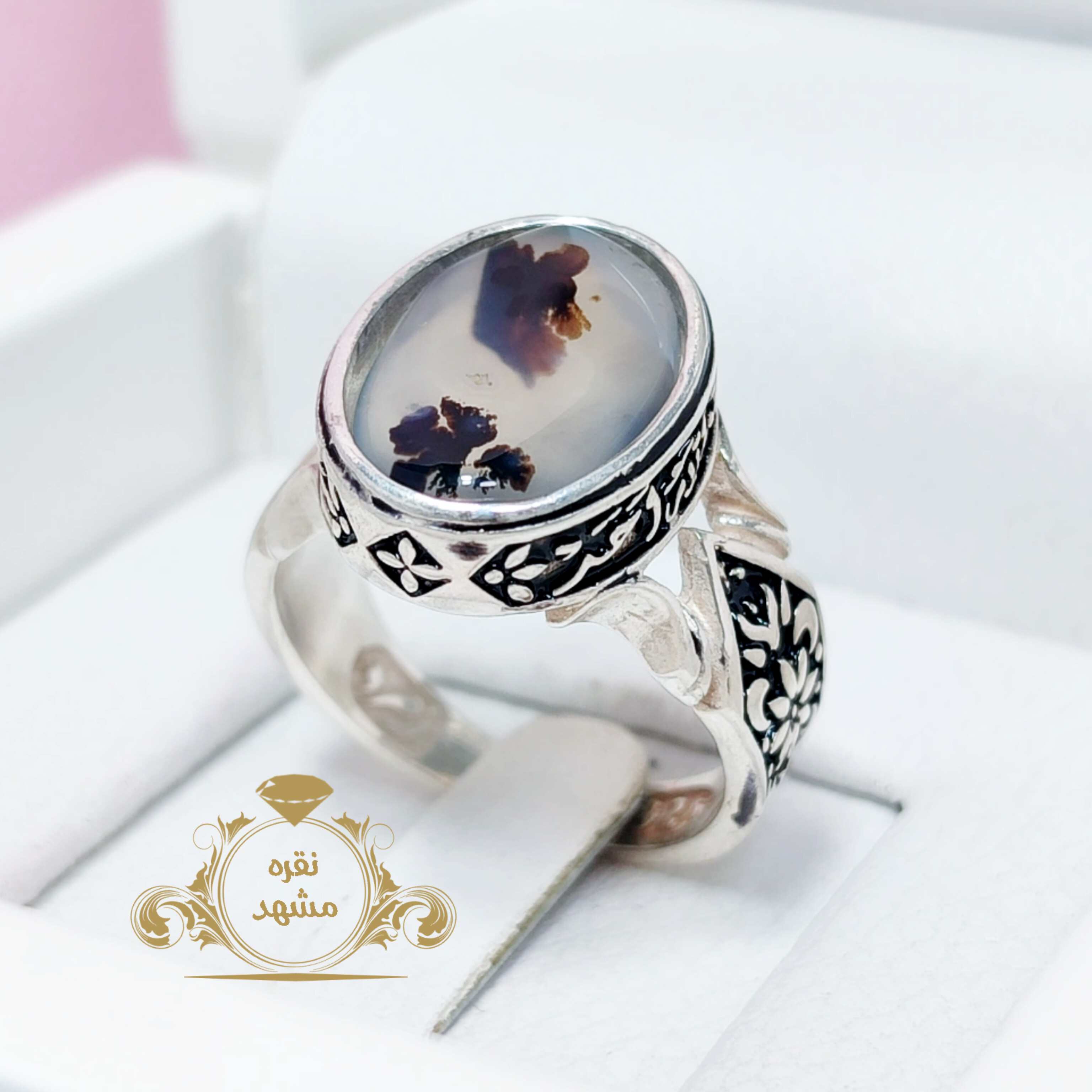 انگشتر عقیق سفید شجری اصل نقش درخت کوچک