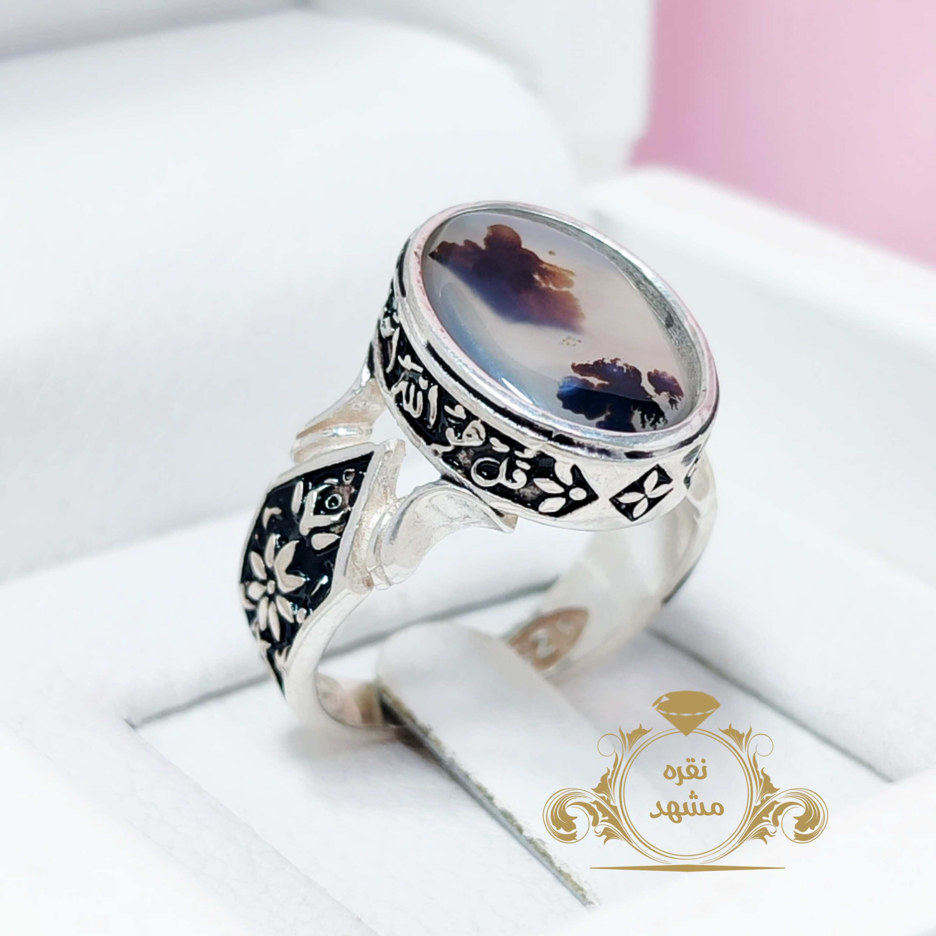 انگشتر عقیق شجری اصل نقش درخت کوچک
