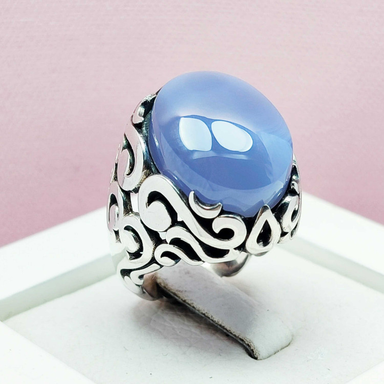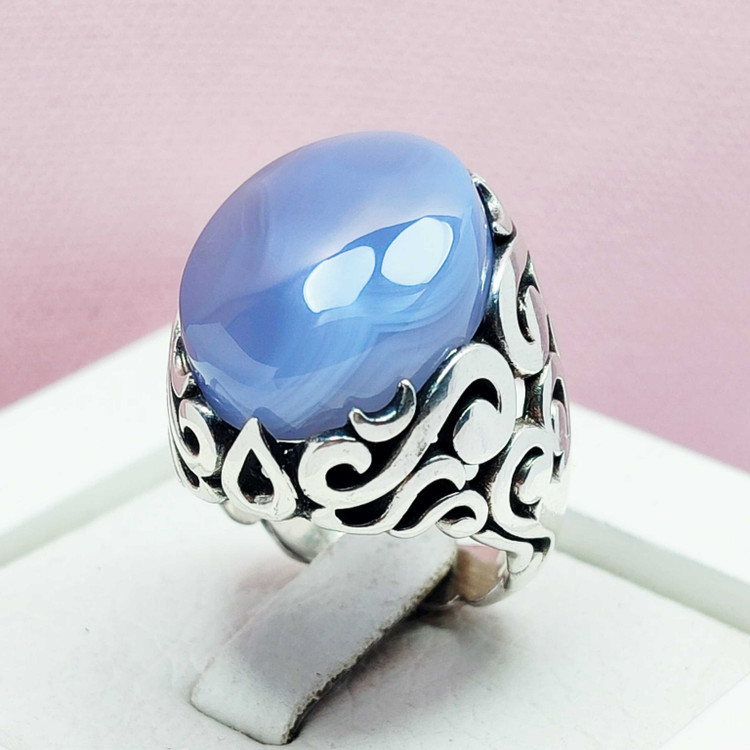 🌟انگشتر مردانه عقیق کبود یمنی