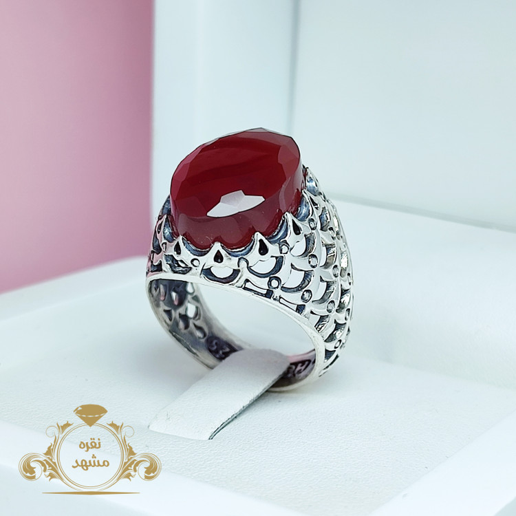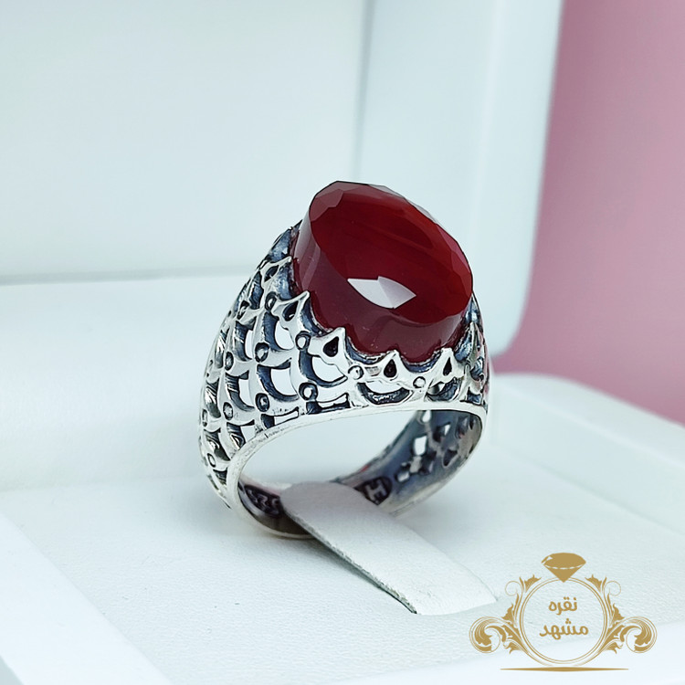 🔴 انگشتر عقیق سرخ مردانه نقره تراش جواهر