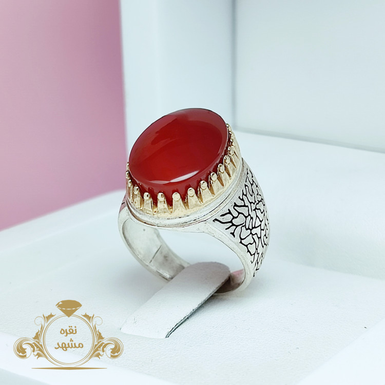 🔴 انگشتر عقیق سرخ مردانه نقره