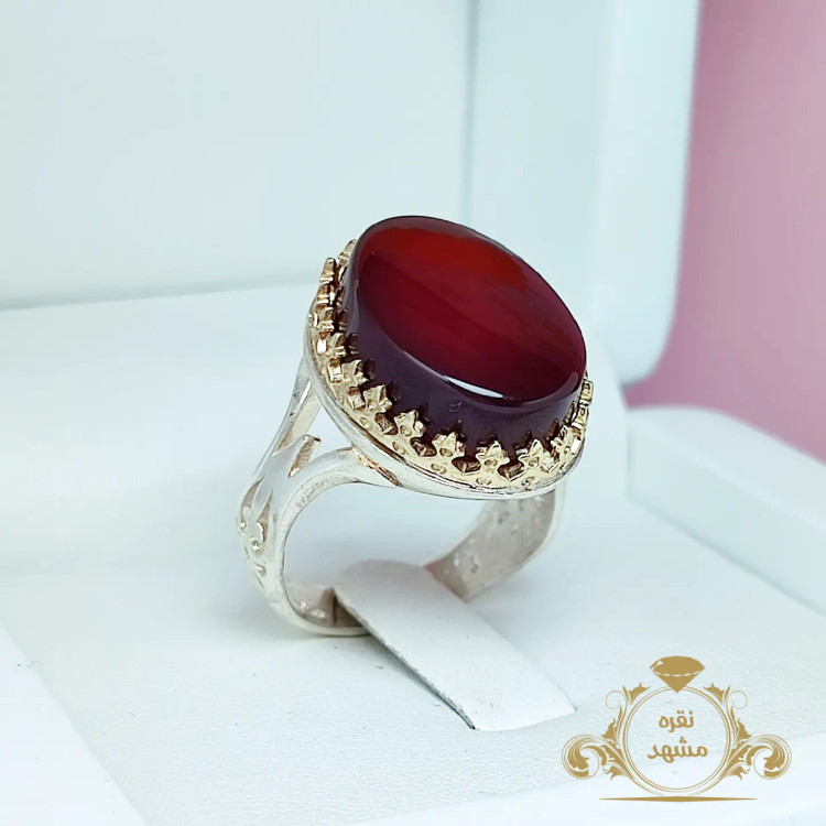 🔴 انگشتر عقیق سرخ مردانه نقره