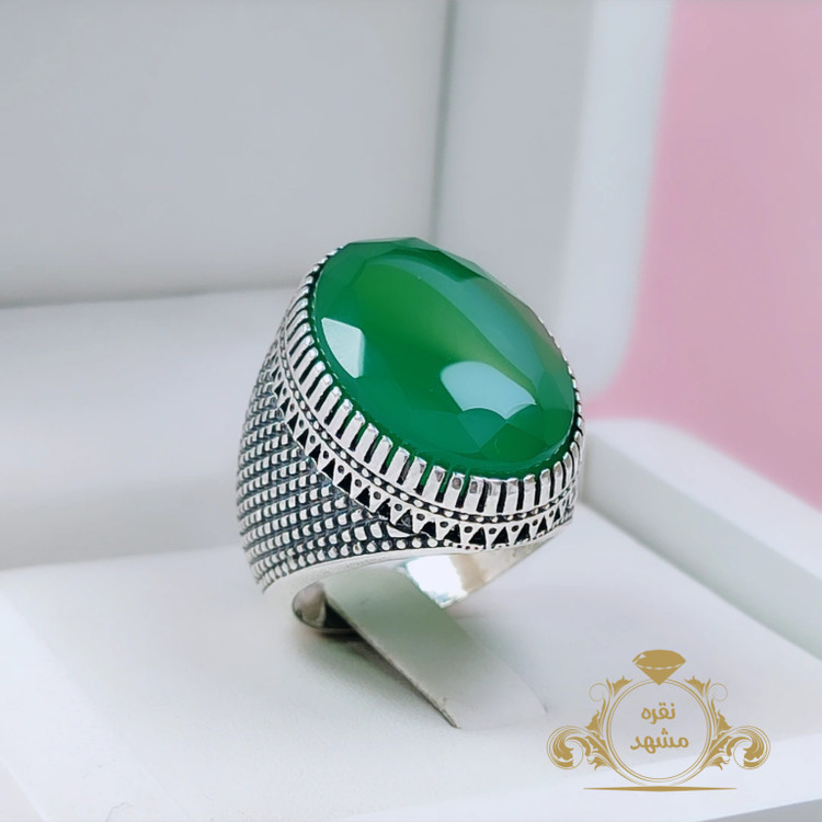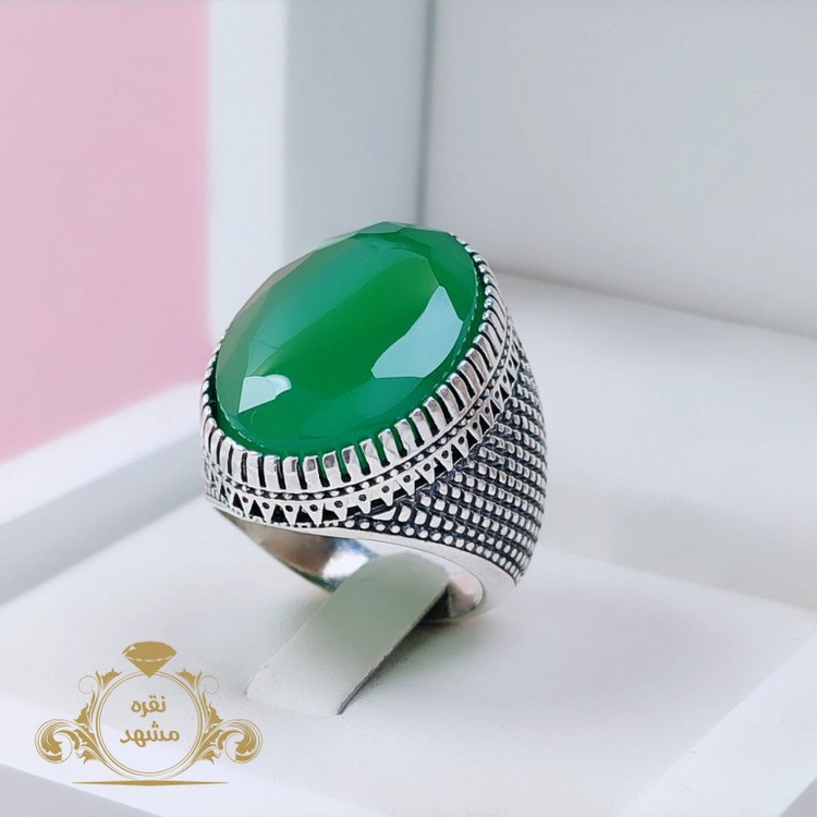 انگشتر عقیق سبز تراش جواهر مردانه رکاب نقره