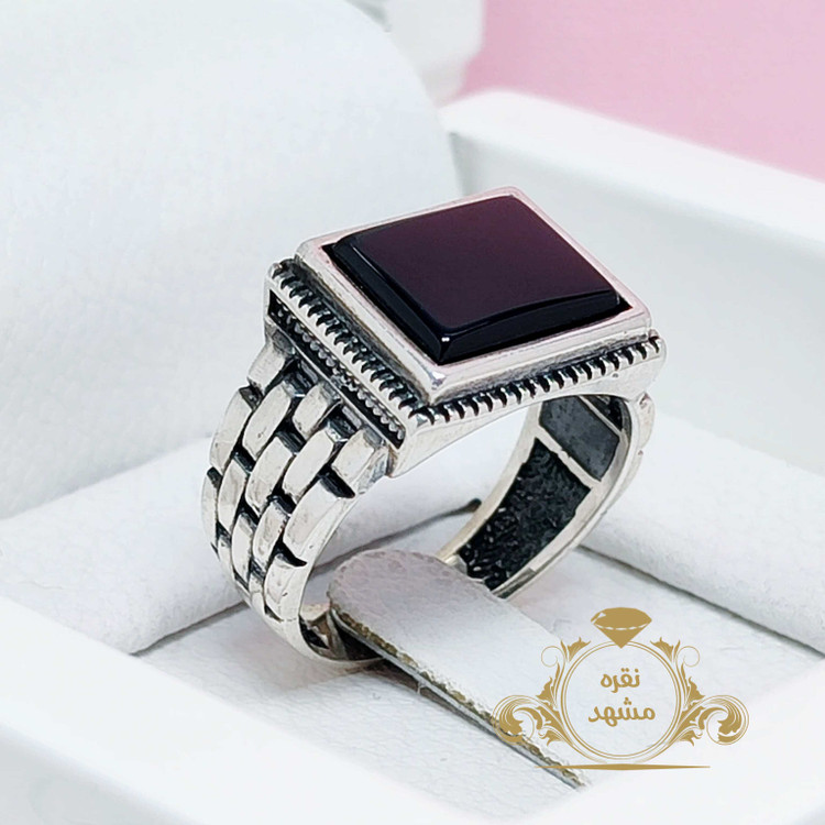 انگشتر رولکسی عقیق سیاه مردانه چهارگوش