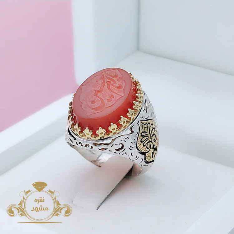 انگشتر یاامام حسین عقیق سرخ مردانه رکاب نقره