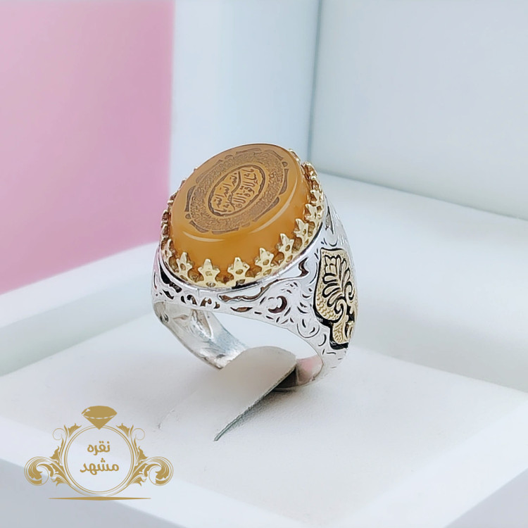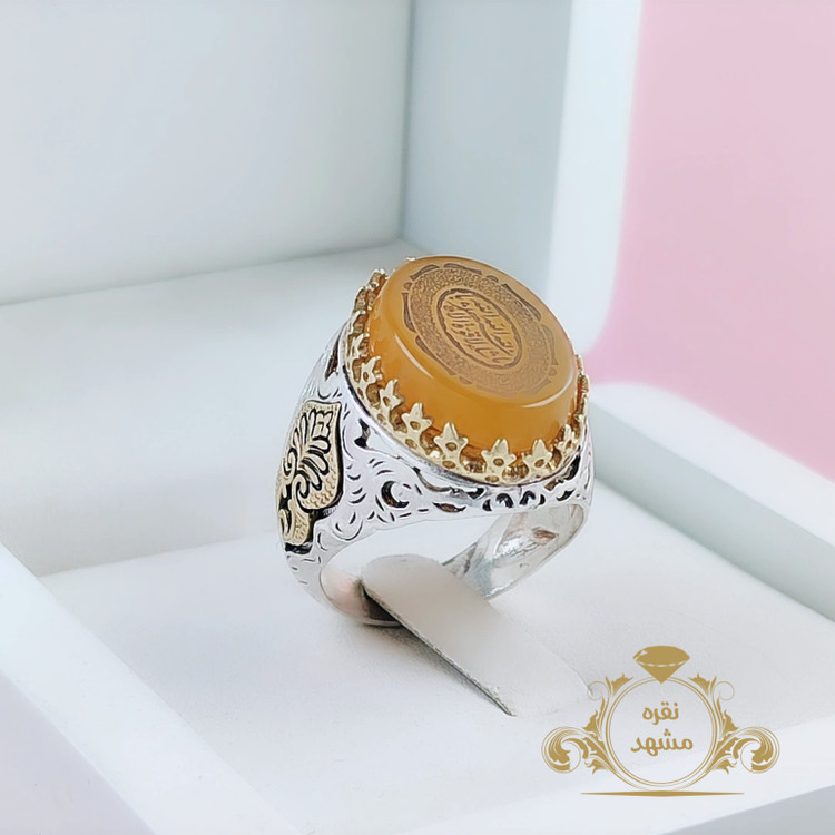 انگشتر عقیق زرد آیت الکرسی مردانه رکاب نقره